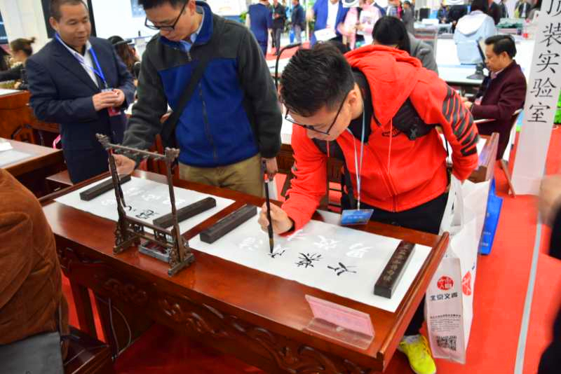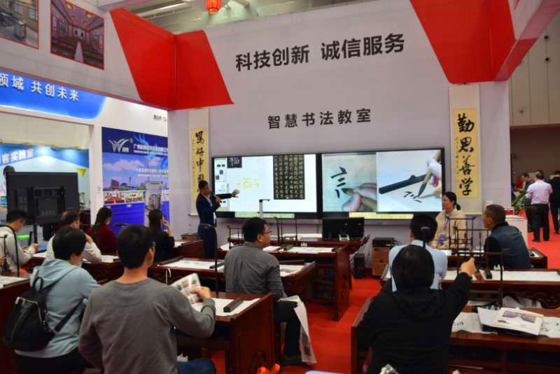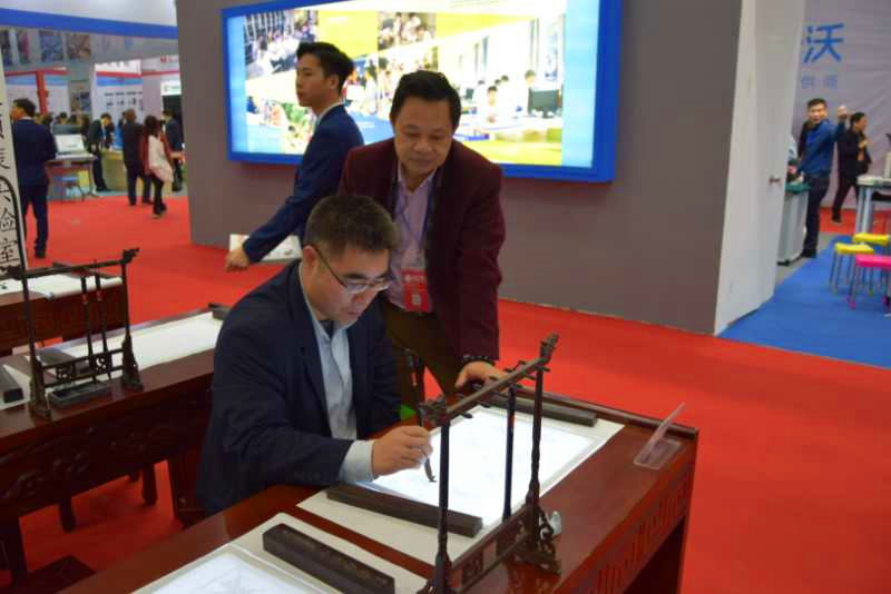 參會(huì)嘉賓體驗(yàn)智慧書法教室