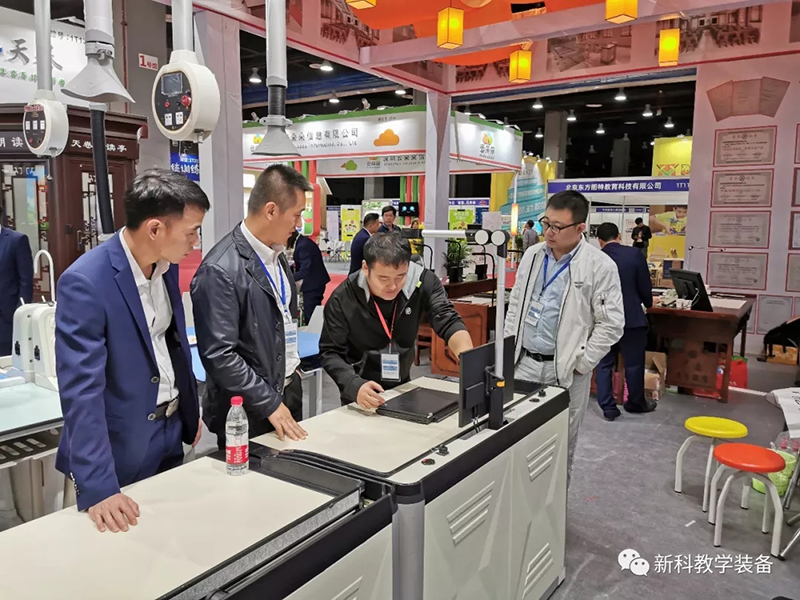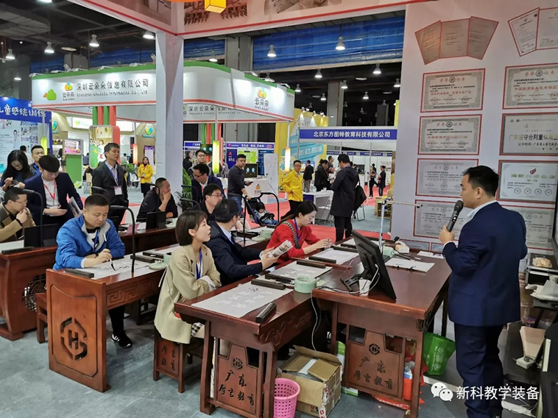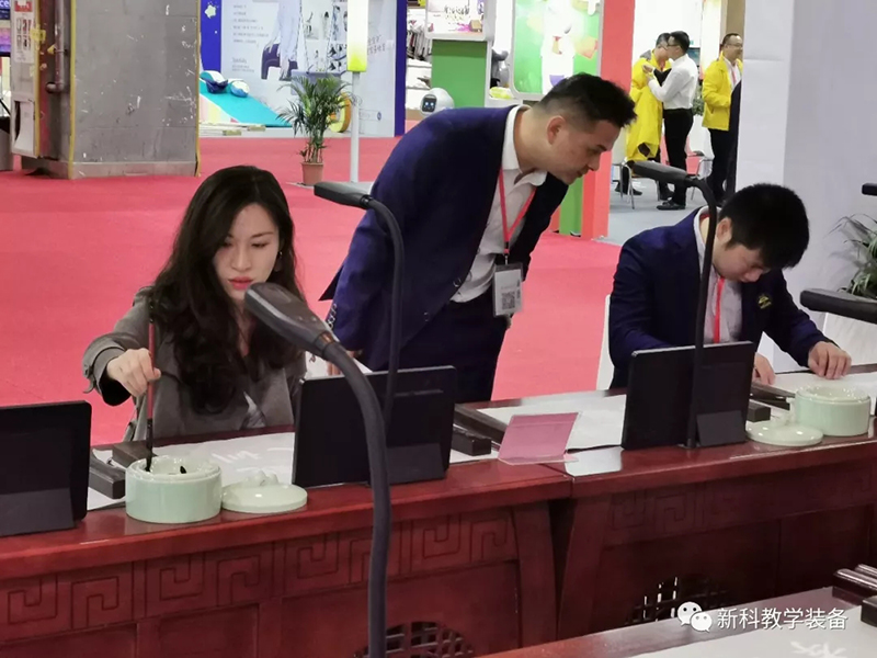 這一次盛大的教育裝備展覽會中,新科教育裝備(簡稱“新科”)也攜帶了自主研發(fā)的教育裝備進駐展會,包括智慧書法教室、智慧頂裝實驗室及理化生實驗操作考評系統(tǒng)、新型材料的實驗室桌椅等產(chǎn)品。在現(xiàn)場,有不少教育行業(yè)專家、商家上前咨詢及多家媒體前來采訪報道,為“新科”展位累積了不少人氣。